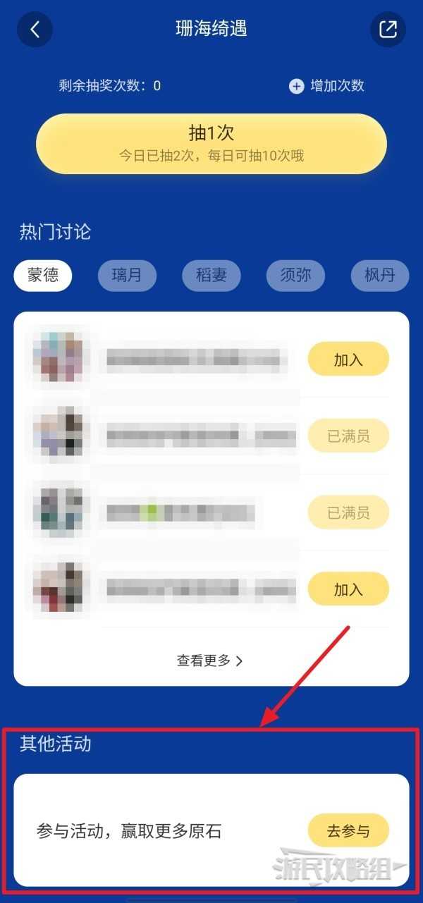本次活动分为三个玩法,能最快获得原石的是帮珊瑚宫心海制作并分享笔记的任务,此活动在进入活动页面后一直往下划,找到【其他活动】并【去参与】。