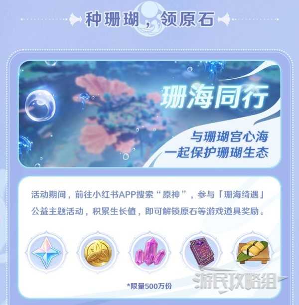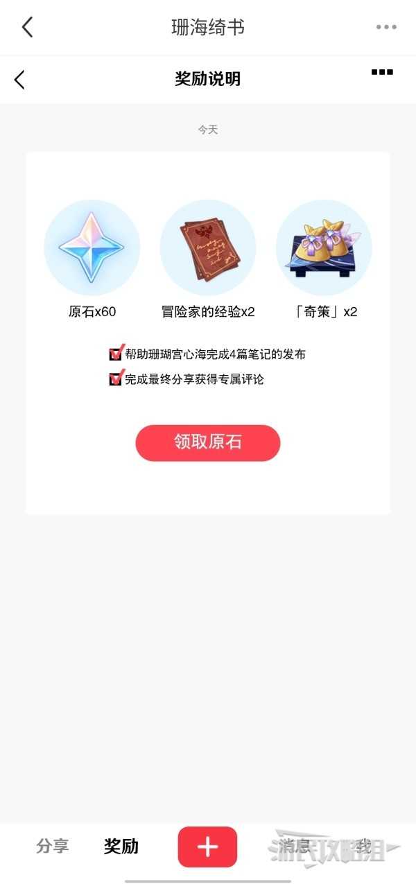 《原神》4.2版本开启了与小红书的联动分享活动“珊海奇遇”,活动期间帮助珊瑚宫心海完成笔记并完成分享任务即可获得原石奖励,下面就为大家带来《原神》珊海绮遇小红书联动原石领取方法,希望对大家有所帮助。