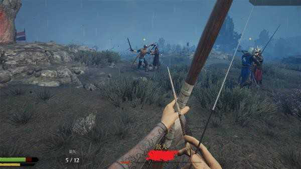 弓手的进阶装备,也是最后才能解锁的集伤害、灵活于一身的武器,战弓的射程、箭矢飞行速度也更胜木弓一筹。战弓可以做到一箭一个敌方弓兵,偶有一箭空血不死的情况,一般命中伤害为70~80,四肢也有40~50,头部则可以上百,据说燃烧时爆头甚至可以秒杀满血骑士但几率不高。一名神箭手可以有效迫害敌方弓兵并且能在整局游戏中相比其他所有武器保持最高KDA。当然迄今为止我见过的可以称之为神箭手的玩家仅有5、6位。除了本身的技巧高超,寻找合适的点位对于弓手也是十分重要的,每张图不同的点位还需要玩家自行寻找。