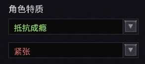 除了技能还有一个对角色影响很大的点是角色特质,我们需要选择一个正面特质和一个负面特质。