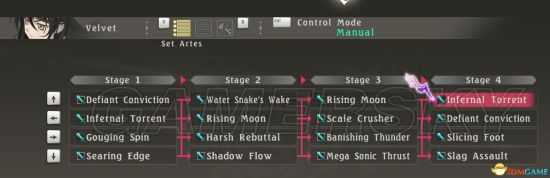 最后说第4行,其实第4行主要是前3行的补充,无论是弱点还是属性,都算对前面几行的一个完善,设置后除了小黄鸡,套路中所有属性和弱点都覆盖了。但本行本身就是伪连,主要就是打小怪时的补充完善,打BOSS级没晕慎用。其中红火刃和岩斩灭碎阵设置在第一和第四的位置,主要目的也是作为不适用无律排反时的替补技能。