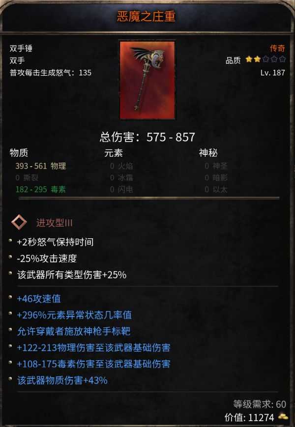 系统默认设定是消耗怒气自动回蓝。蓝怒转换提醒:当你使用怒气技能时,蓝量会增加,反之同理。这个技能就是把系统设定改为消耗蓝自动回怒气,其实这个点的最核心还是它下面的分支狂暴侵袭,750怒气以上释放血刃为双倍伤害。高怒气上限可以帮助你打出更多的双倍伤害,我目前怒气为1768.当你怒气过低,或者不到750时,你可以用以太穿越迅速消耗掉蓝,来帮助你增加怒气,核心手法还是打出更多双倍攻击。有人会问,为什么我的蓝/怒栏里会有黑条,导致无法使用技能,那是你魔怒转换时间太长,所以建议副手打3个转换缩短,装备上有点最好,如果没有,建议首饰也打这个宝石。如果这个不够的话,整个操作过程就会变迟钝,就要花时间等黑条消失,来等待魔怒转换。