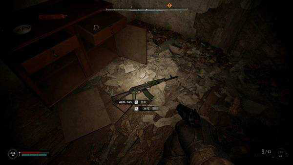 在左边的第一个房间,里面会有一个死去的士兵,他旁边有一把比现在手里的AKM更厉害的AKM-74S,可一定不要忘了。