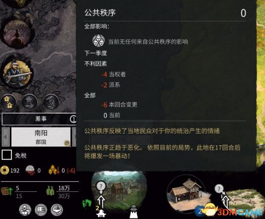 公共秩序关系到郡国的安定程度,一旦具体郡国的公共秩序数值跌落至-100时,叛乱就会发生,起义军就会从地方涌现,攻击所在郡府,到时就不得不调兵平叛,坏我战略节奏,滞迟统一进程。