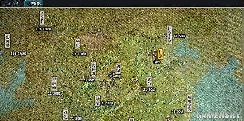 世界地图则可以看到游戏中所有的场景地图以及各地图的怪物等级范围,大家可以通过世界地图选择适合自己挂机的地图场景