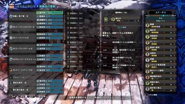 武器放在最后讲是因为这个选择性挺多的,先说我选轻弩的原因除了是采鹿角最适武器外,个人认为起爆龙弹是打小怪最快最轻松的武装,只要地上放两颗他们敲他们一下他们自己会围上来送死,而且又可以轻松打天上的蚊子泄愤(就算穿了麻痹被打了还是会痛有时候就会想消灭他们),可以选水或者龙轻弩还有睡眠弹可以打,隐身装衣在CD的短暂时间可以用来停止大型魔物的行动,本人选冰轻弩只是单纯因为我喜欢白色而已(被打),其它还可以选笛子自己吹强走就可以把强走跟耐性回复拔掉换别的技能,或者是有人就是喜欢用长枪赶路都是不错的选择,不然选自己喜欢的外观也是很棒的!