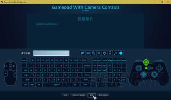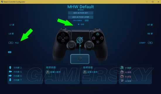 我在这边用了两个设定,一个是触控板把他设定成「SELECT」的功能,也就是开地图;另一个是把SHARE按钮设定成F12,也就是我的Steam抓图功能。