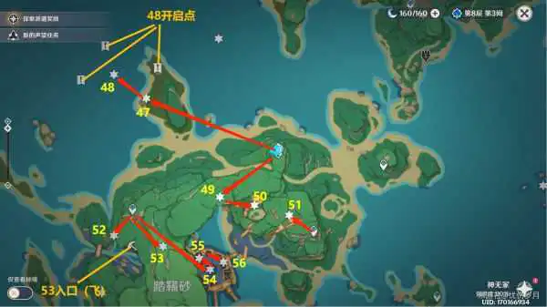 53 悬崖下一点,在镐子标点飞一点后贴着山体往右爬,注意体力(极其阴间)