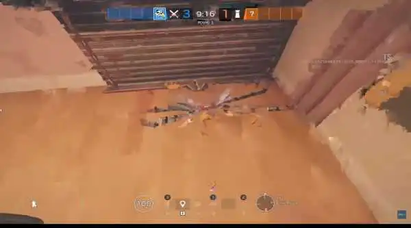 硬切ACE的切墙道具为投掷物,投到墙上会粘住并向下伸出气泵炸开墙壁,一个道具可以依次伸出两个气泵,先后炸掉上下两块一共约1.5个Hibana榴弹切口高,1个热切炸药宽的缺口,全过程和Hibana引爆榴弹时长相仿。