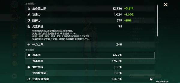 这里是我的魈的站街双火面板,充能只有104,但是实测深渊够用,大家再低也不可能比我低了吧