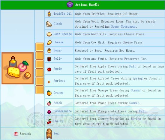 苹果:由秋日苹果树上收集获得,亦可在蝙蝠洞内找到