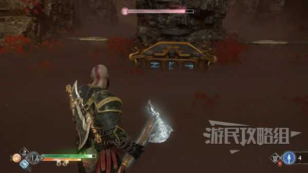 首先要做的就是记下宝向上的符文,别给整忘了。前往其他三个大房间,清理掉敌人后,在山崖上、角落里或其他地方找找如下图所示的符文装置,扔出斧头攻击装置让其显示出正确的符文即可。找到全部三个封印,最后返回迷宫入口处打开女神宝箱就行了。