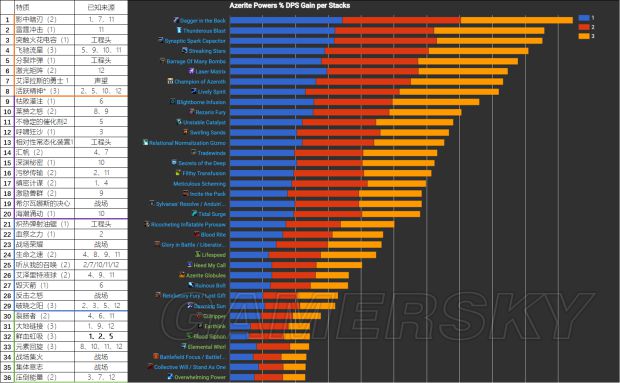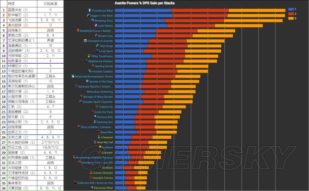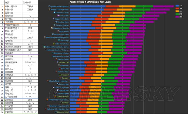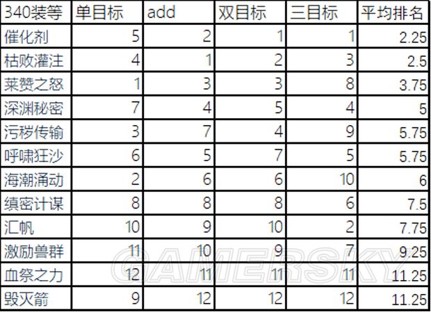 另外附上去除了影中暗刃与雷霆冲击的通用特质340装等下各环境相对排名图。由于各特质可获取数量不同,在这里不对特质数量对DPS的提升进行相对排名。