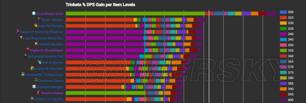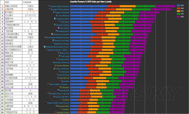 在340装等下,工程头两特质可以说是一家独大,提升DPS5.54%。艾泽拉斯勇士,影中暗刃,雷霆冲击在T2梯队中最为优秀,提升DPS均超过4%。其余T2特质相差不大。