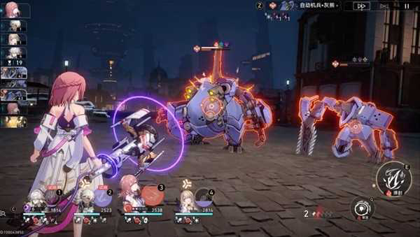 轮到艾丝妲攻击,接着阿兰开大,目标选韧性值少的那只,接着阿兰战技打能够击破的那只,并回满能量。随后不要急着开大,到希露瓦回合,普攻攻击已经削韧的那只就能充满能量,接着希露瓦开大,击破另一只,并且回满能量。接着希露瓦和阿兰两个大招就能击杀敌人,如果不能,景元还可以补个战技。