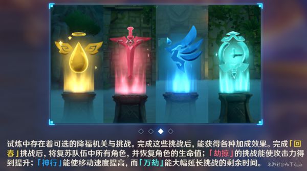另一个技巧是,遇到元素攻击机关不必先处理,利用它挂buff最省心。比如【愈疗试炼】中有个宫格是雷机关,刚好可以利用它给火斧丘丘挂雷,秒得非常舒爽。