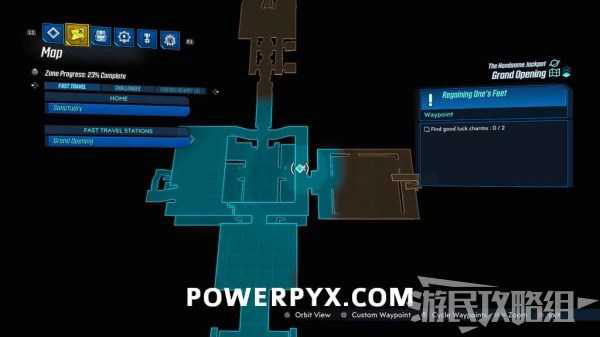 跟随接下来的2个任务标记点,击败该区域的敌人(或者直接不管他们)并捡起2个幸运符(一个在楼上,一个在楼下)。