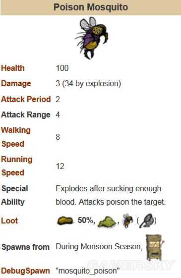 注意:蚊子撑死爆炸时离远点,那一下伤害34,且带有中毒效果!