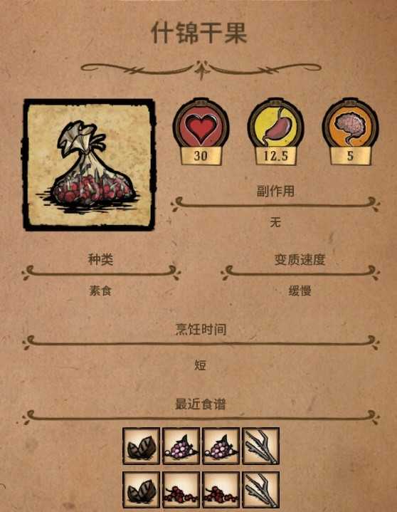 烹饪条件:烤桦树果>=1+浆果/多汁浆果>=1+水果度>=1,不能有蔬菜/肉/蛋/奶度