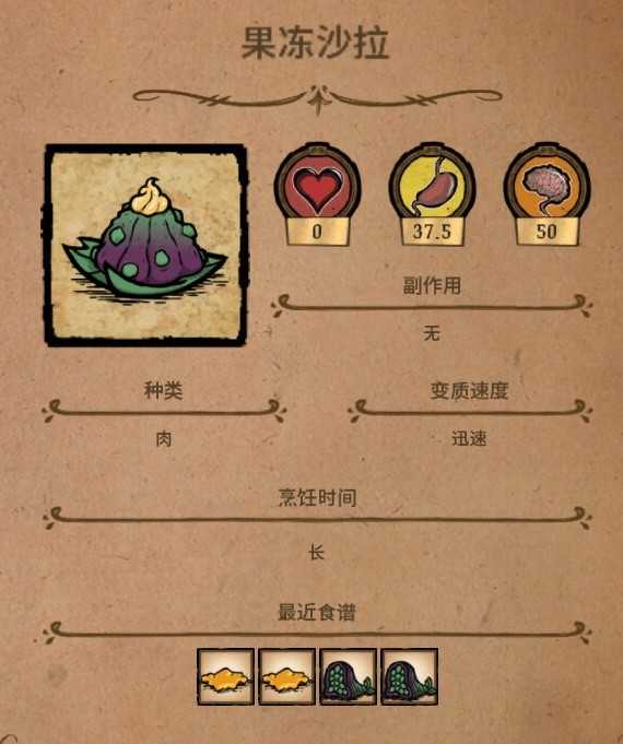 恢复血量和饱食度的属性都非常优秀,原料也比较易得,可以通过种植刷出大量火龙果,保质期也比较长。(就是有的时候拿它恢复饱食度会心疼溢出的治疗值,或者反过来T_T)