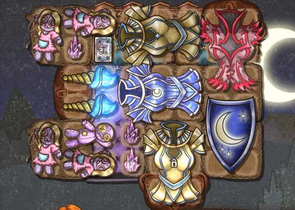 这个套路也是从别人那里学来的,之前用灯火法排位自认为自己很胡,结果遇到这个乌龟收割者,连盾都打不破,排位两大主流流派 灯火法和兽王猎,在都胡的情况下应该都比不过这套收割者乌龟流,前期刷魔法火把的若干配件,碰到会员卡也拿,增加出神圣甲的概率,碰到魔法球无脑拿,碰到神圣甲紫水晶无脑锁,抱抱小姐也拿,盾牌要一个,两个酌情考虑,打折的木甲也可以要。然后就用魔法球合成月光甲月光盾。如果什么都没刷到就开格子,需要大量的格子。