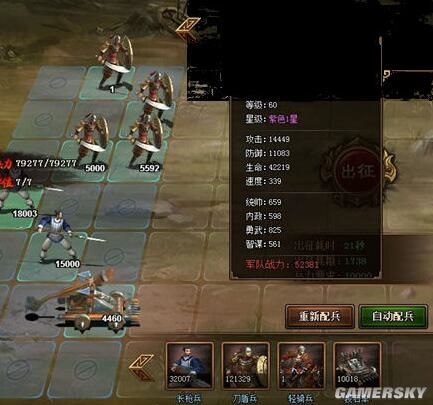 武将属性:宝石加武勇和攻击,装备洗炼主加武勇,统率凑合即可,不嗑药带6万兵,嗑药后8万,因为你的战力比对面低,所以出统率是和对面耗是没用的,要诀就是局部的以少打多和辕门射戟带来的白打你几队兵。