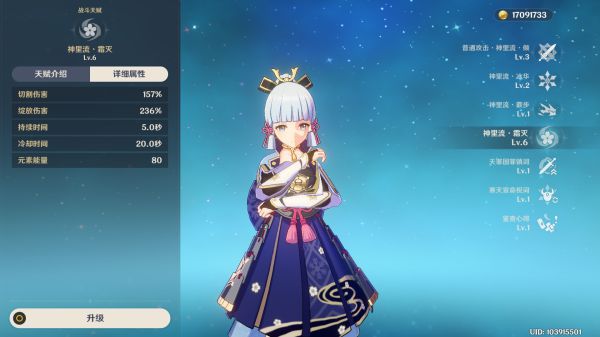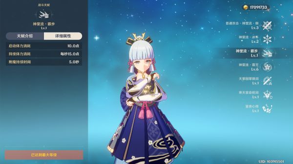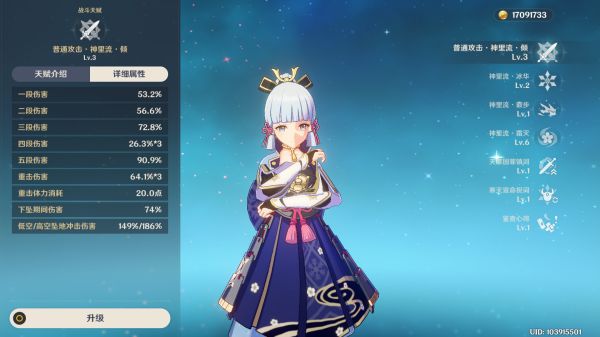 1.神里的输出主要依靠普攻、重击和大招,普攻的优先级在大招后,但也是要拉到9级。