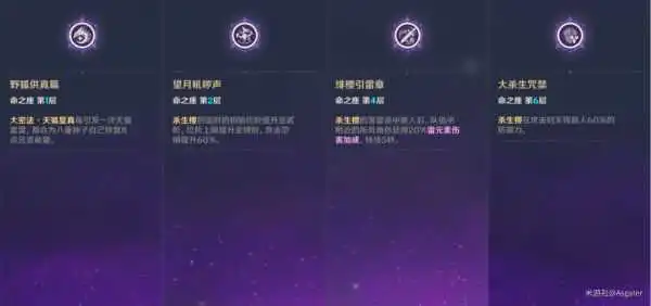 4命,在杀生樱命中敌人后全队雷元素伤害提升,无内置CD,命座效果的覆盖率高,增强了八重对于队伍的辅助能力