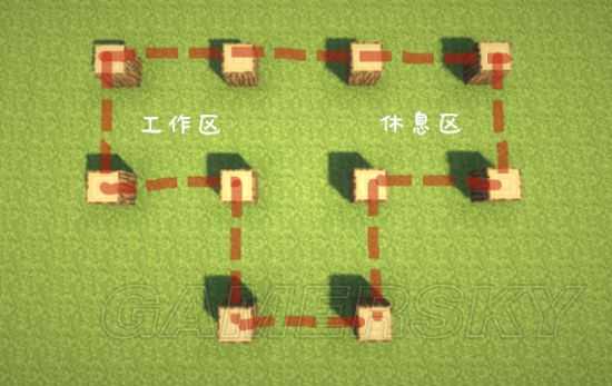 MC里面也可以按照家里的分区来分,可我们是生存小屋,所以简化分区,将小屋分为工作区和休息区。