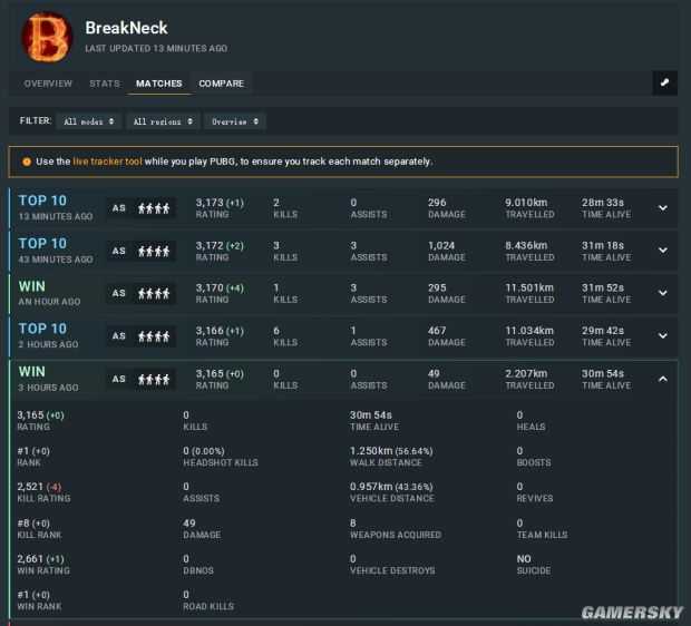 3.你吃鸡了之后,your profile就可以查看你的战绩了。