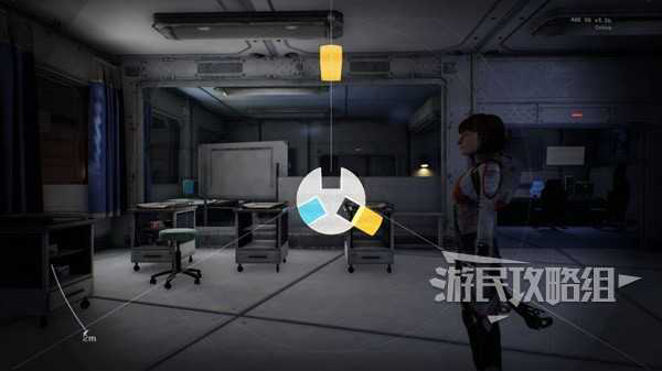 切换至机器人视角,此时可以在房间里到处飞了。屏幕中间会有一个圆环,外边还有三个黄色或蓝色的方块: