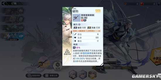 从武器的能力数值上我们不难看出,这是一把充能能力比较优秀,但是不太擅长破盾的武器。当初天琅刚推出的时候,破钧在武器组中的主要作用一个是输出充能,另一个就是在后台提供一些增益。(天琅推出的时候,雷队核心依然是白月魁,当时因为白月魁是联动武器的原因,导致很多人刚入坑玩雷队没有武器破盾,只能用凛夜顶,后来出了芬璃尔之后凛夜和天琅就在安心辅助增益偶尔辅助输出了。)
