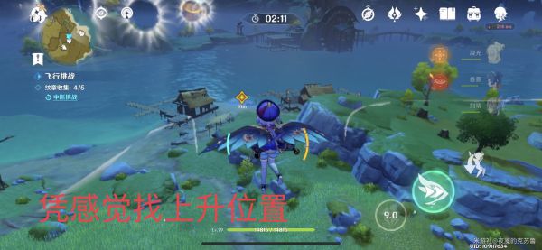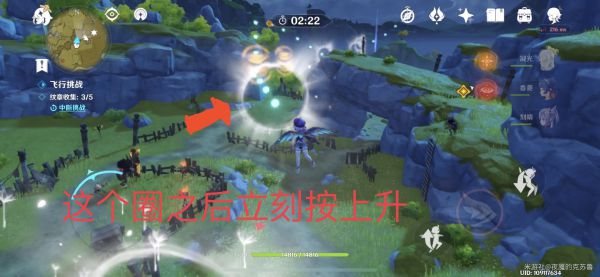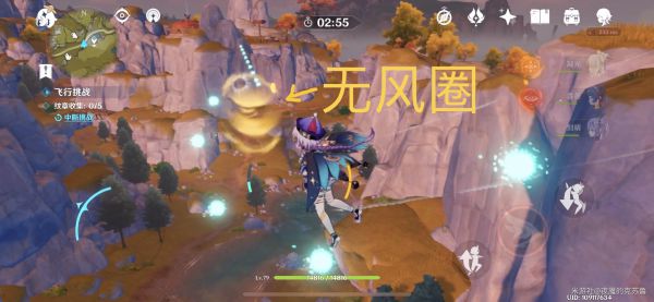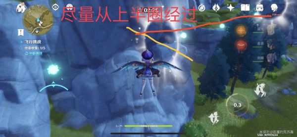 上来没有风场,也不必温迪自制,因为前期的飞行下落线路和能量球重合。7个能量球能攒俩个加速。我舍掉了七七脚下最低的那一个,没吃到没关系。