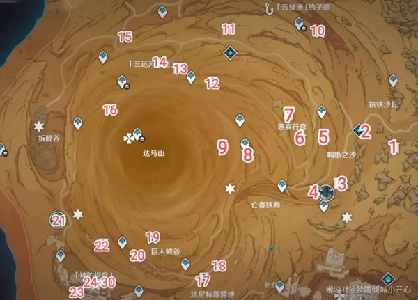 《原神》千壑沙地有30个奇馈宝箱,那么这些宝箱该怎么收集呢?下面请看玩家“梦雨倾城小开心”带来的《原神》3.4版千壑沙地奇馈宝箱全收集攻略,一起看看吧。