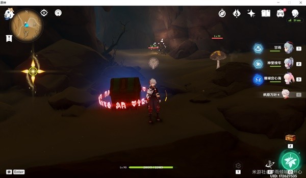 传送到这个秘境,向左边看,有个摩拉箱,捡了之后地板会下陷,漏出一个洞口