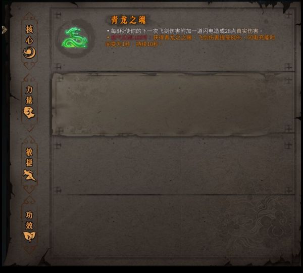 秘籍选上走火入魔之后,青龙之魂初始伤害28×3=84点(走火入魔实际加成只有200%,怀疑是bug)
