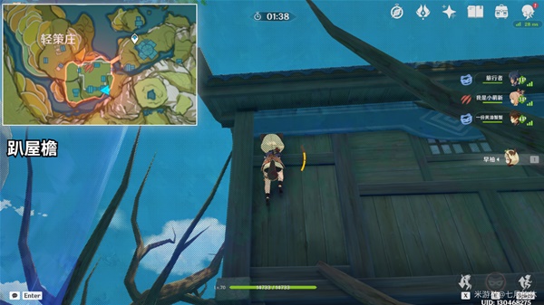 这个位置的屋檐下,刚好有树叶挡住了视线,对于不喜欢抬头看的玩家基本找不到,就算抬头,不仔细看也看不见。