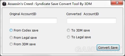 大致的使用方法,以激活成功教程版存档转某位正版玩家用的存档为例,先选上“From save”和"To Legal save"这2个选项,然后在“Orignal AccoutID”内填入你激活成功教程补丁saves.ini文件里的AccoutID(默认是GAME,这个建议大家不要修改,如果要修改游戏里显示的用户名,请修改PlayName=GAME即可,AccoutID没事不要乱改),然后"Coverted AccoutID"里填入你正版的Uplay安装目录下的这个文件夹内的Program Files (x86)\Ubisoft\Ubisoft Game Launcher\cache\ownership 那个类似这样的文件名-d3ca-42dc-31e6-809d1d10e23a,这个-d3ca-42dc-31e6-809d1d10e23a就是你正版的AccoutID,然后点"Coverted Save"
