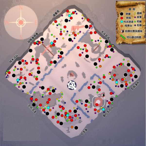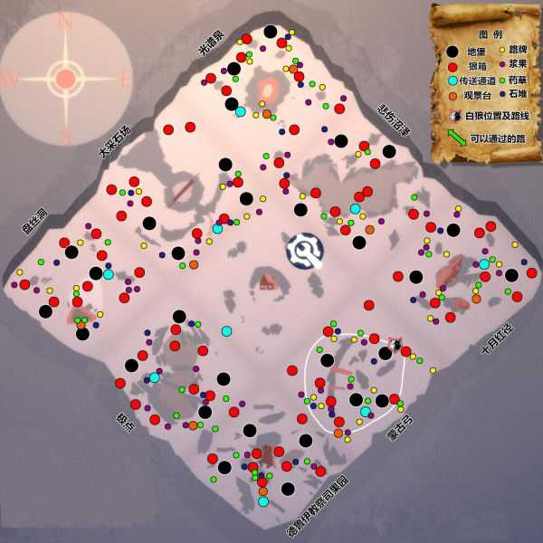 这个地图,还没有没做完。但是绝大部分资源点位基本都完成了。狼箱肯定是98%以上都标了,地堡刷点估计也差不多。通道、草药、白狼、浆果这些可能有些遗漏。仅供参考。