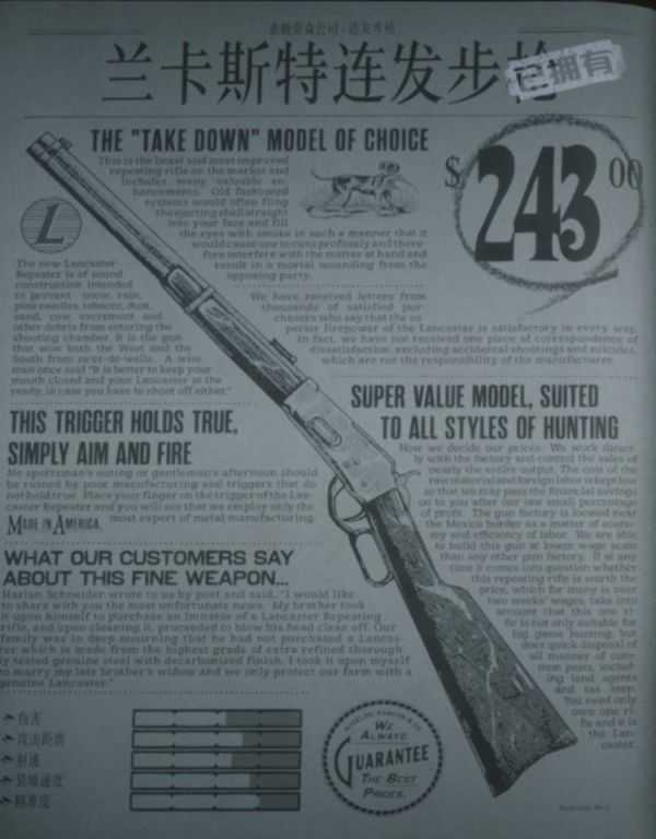 当您达到12级并且拥有一张“死亡标记”能力卡时,我们建议您更换手中的卡宾连发步枪为“兰卡斯特连发步枪”,这款温彻斯特公司出品的杠杆式卡宾枪被誉为“开拓西部的枪”。相信在您手中会非常得心应手。