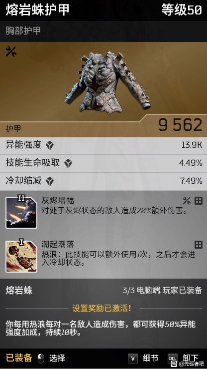 3、面对boss,先放火烧两波,尽量等boss身边小怪一起过来的时候烧,保证烧到最多的怪(套装特性,会让你的异能翻好几倍)然后放灰烬(这个技能范围其实非常大,不需要带增加范围的mod,多一个位置可以上一个增伤的),灰烬上好后直接放过热。你会看到boss直接就被扬了 被扬了,扬了,了
