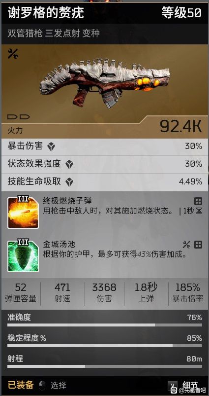 我是原来玩灰烬子弹,发现灰烬增伤非常多,想到异能留打boss刮痧,因为异能流只有火增伤,所以搭配着试了试。