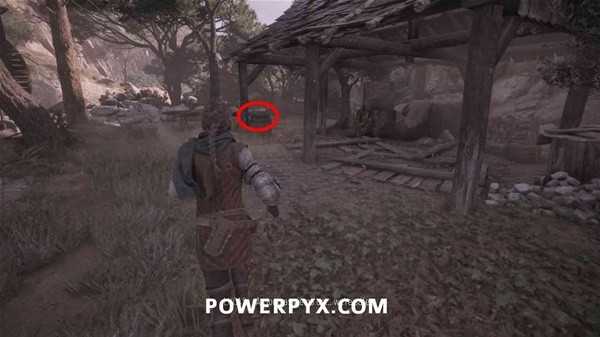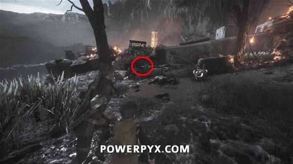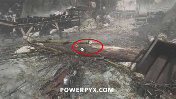 遭遇敌人后,来到这片区域左前方的尽头处,从侧翻的马车上拿到短刀。