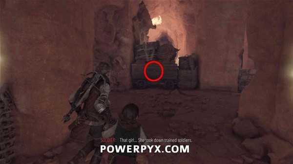 在石场中遭遇第一波敌人后,开门逃离,前边的矿车上插着一把短刀,直接拿起来。