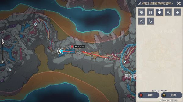 直接从锚点处飞过来就行,在最底下(也就是开头的第一张「奇怪的岩石照片」拍摄地),然后在光点处拍摄即可