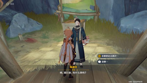 想要在海迪夫的对话中触发“关于奇怪的岩石...”选项,得持有任意一张「奇怪的岩石照片」才行哦!