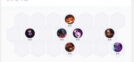 恶魔换形阵容,这套阵容的核心在于纳尔(转恶魔)莫甘娜的一套控制以及火男加寡妇对后排的收割。常规的站位如下图。该站位用于场上多人对战,无法准确预估下一次对手时候的万金油站位。