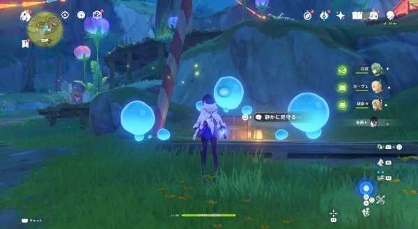 3.靠近小水珠开始捉迷藏,分别与史莱姆箱子、会动的鳄鱼玩具、正在眨眼的史莱姆箱子、人偶、手杖互动。
