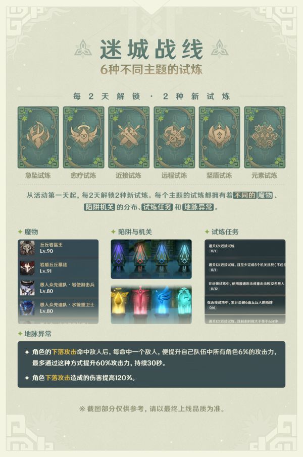 《原神》即将上线新的活动——迷城战线,玩家需要使用指定的角色组成编队并进行试炼挑战。下面请看由“飞翔的丘丘人”带来的《原神》迷城战线活动时间及玩法说明,一起来看看吧。