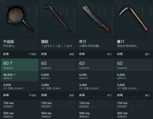 《绝地求生大逃杀》中近战武器用于前期没有枪的时候,很多玩家都热衷于平底锅,所以对其他近战武器并不了解,下面小编就为大家带来《绝地求生大逃杀》近战武器数据资料一览,希望能够帮助到大家了解近战武器。